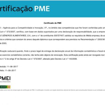 A AGA foi certificada como PME pelo IAPMEI para o ano de 2017.