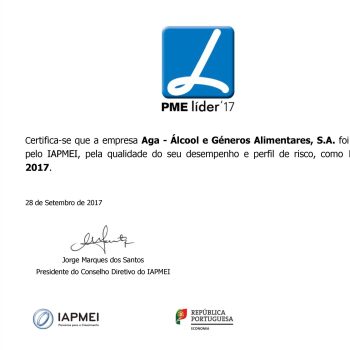 É novamente atribuído à AGA o Estatuto PME Líder para o ano de 2017.