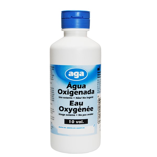 Solução aquosa de Peróxido de Hidrogénio a 3%.