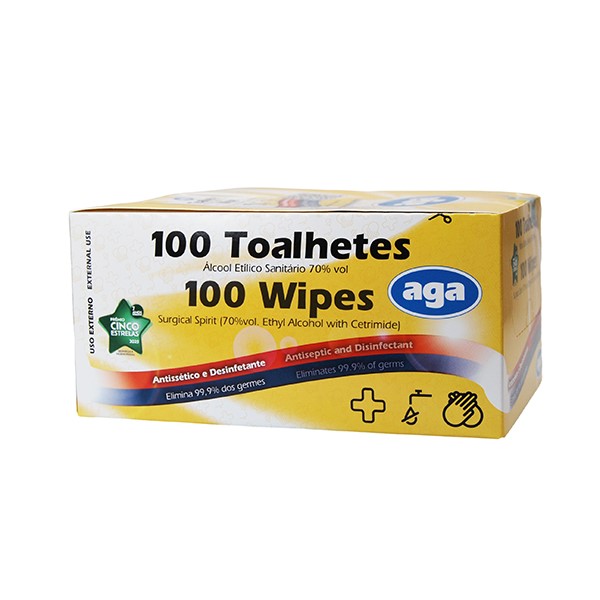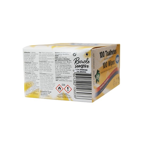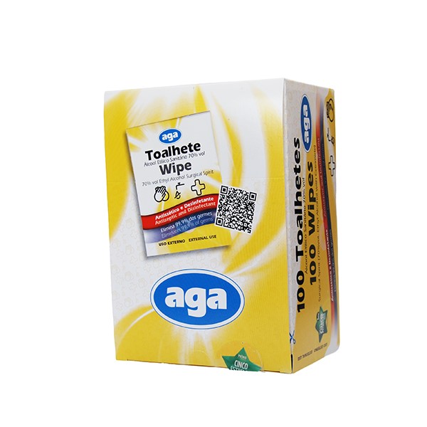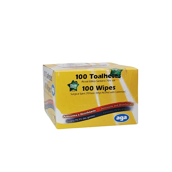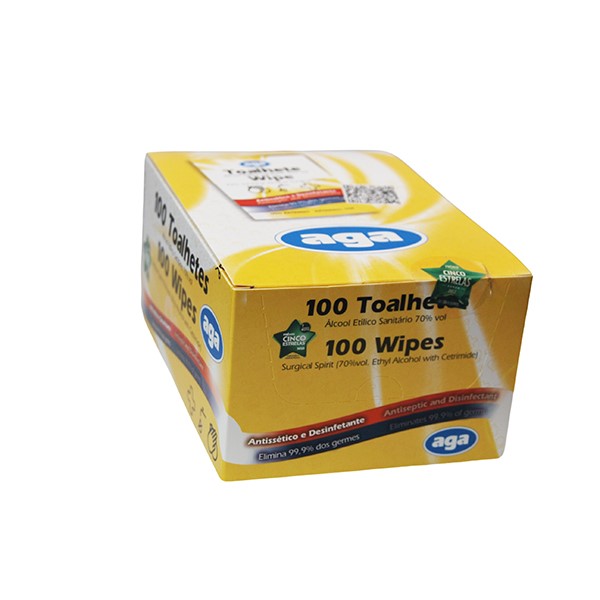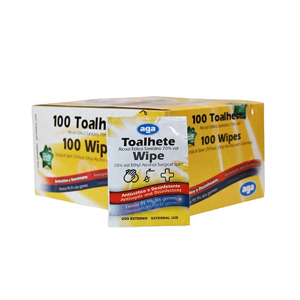 / Toalhetes Individuais impregnados com Álcool Etílico 70° – Caixa com 100 unidades